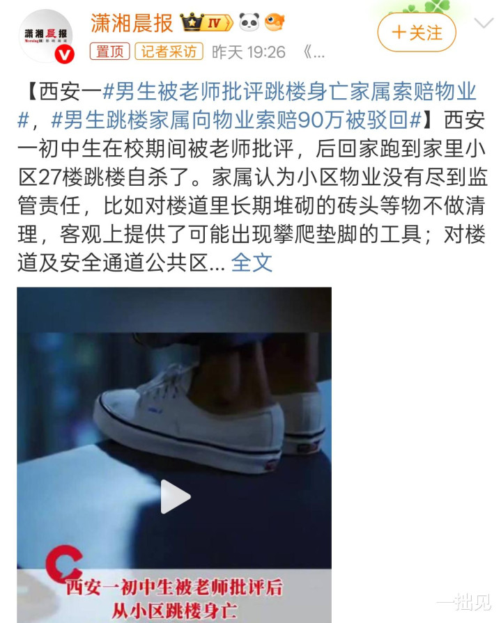 物业这是无妄之灾,若何能念念到有东说念主岂论三七二十一跑27楼轻生呢?况兼这事得启事并不在物业,哪怕这些场合的安全隐患齐作念够了,你就能已毕得了孩子不会干其他的事了么?